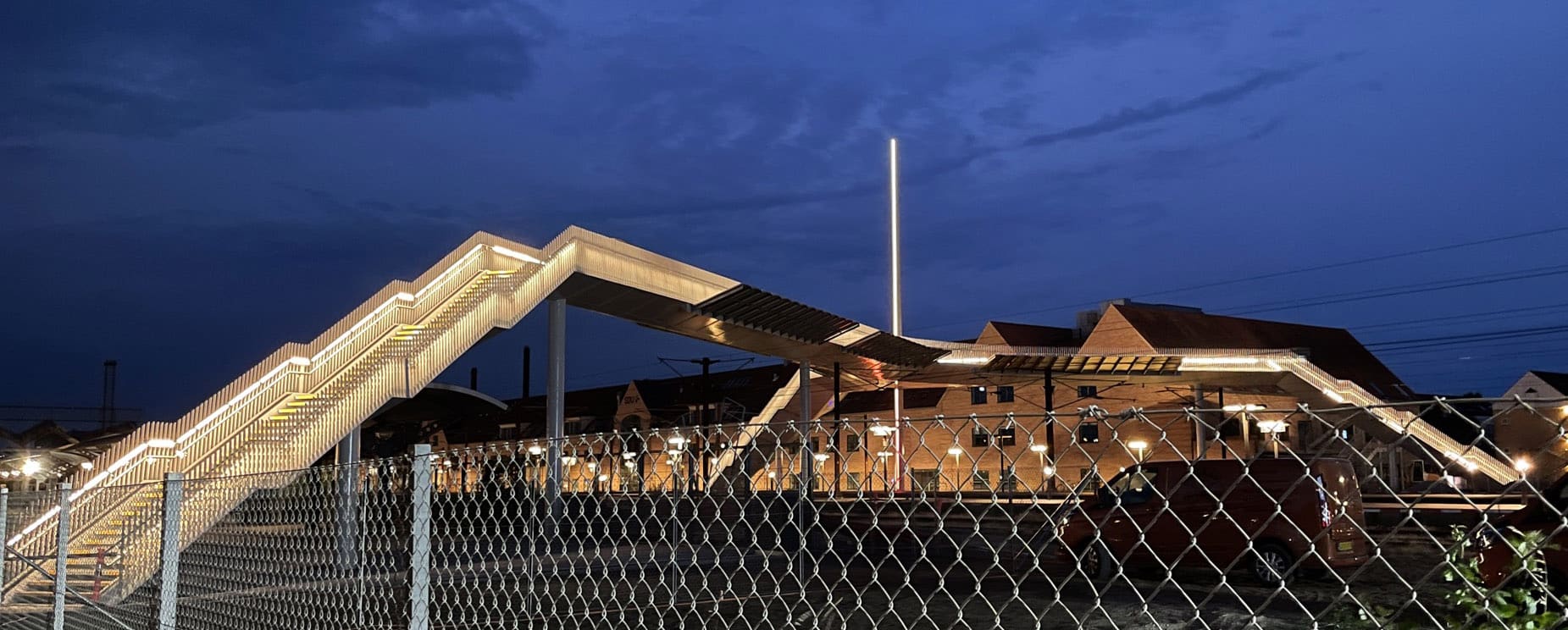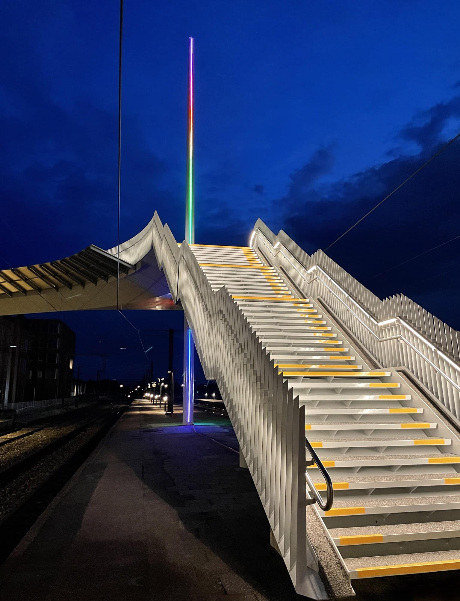 Gangbro forbinder bydelene i SlagelseVi har udført stålproduktionsgrundlaget for bro, trapper og rækværker.Se mere om projektet hos arkitekterne Dissing+Weitling herFotos: HSM Industri og iGuzzini Denmark